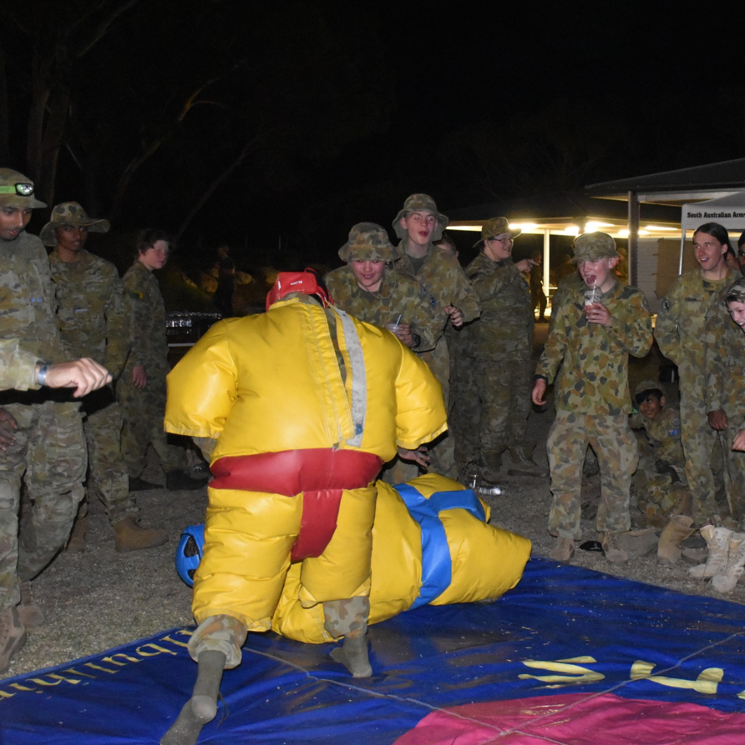 A bungee run, barbecue dinner and sumo wrestling were a part of the last night's festivities. Photos: Australian Army Cadets South Australia/Facebook.