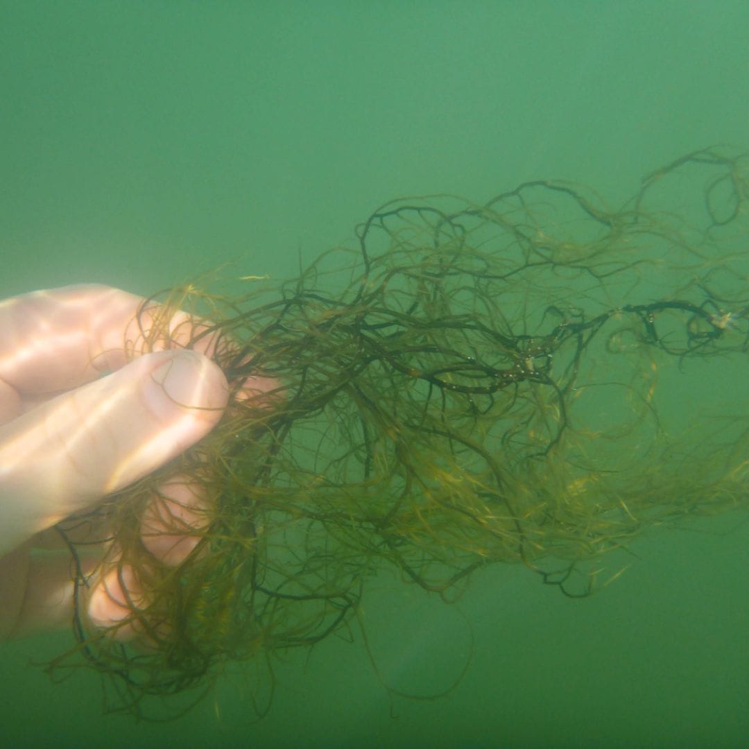 The Coorong should be healthy and home to species like the underwater wireweed on the left, but algal blooms have caused untold damage to the ecosystem. Photos: Coorong Environmental Trust.
