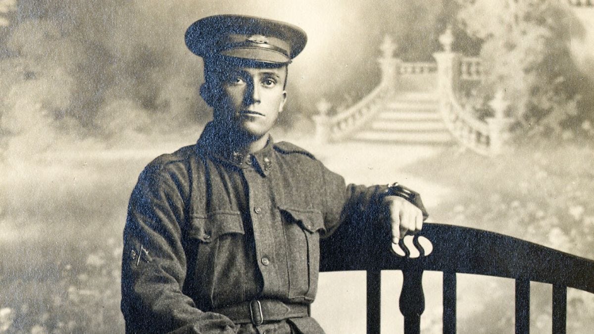 He spent the next six months mired in the trenches in Flanders, in “horrific” conditions, then was mortally wounded when he caught a piece of shell in the back during an Allied attack on the town of Messines.