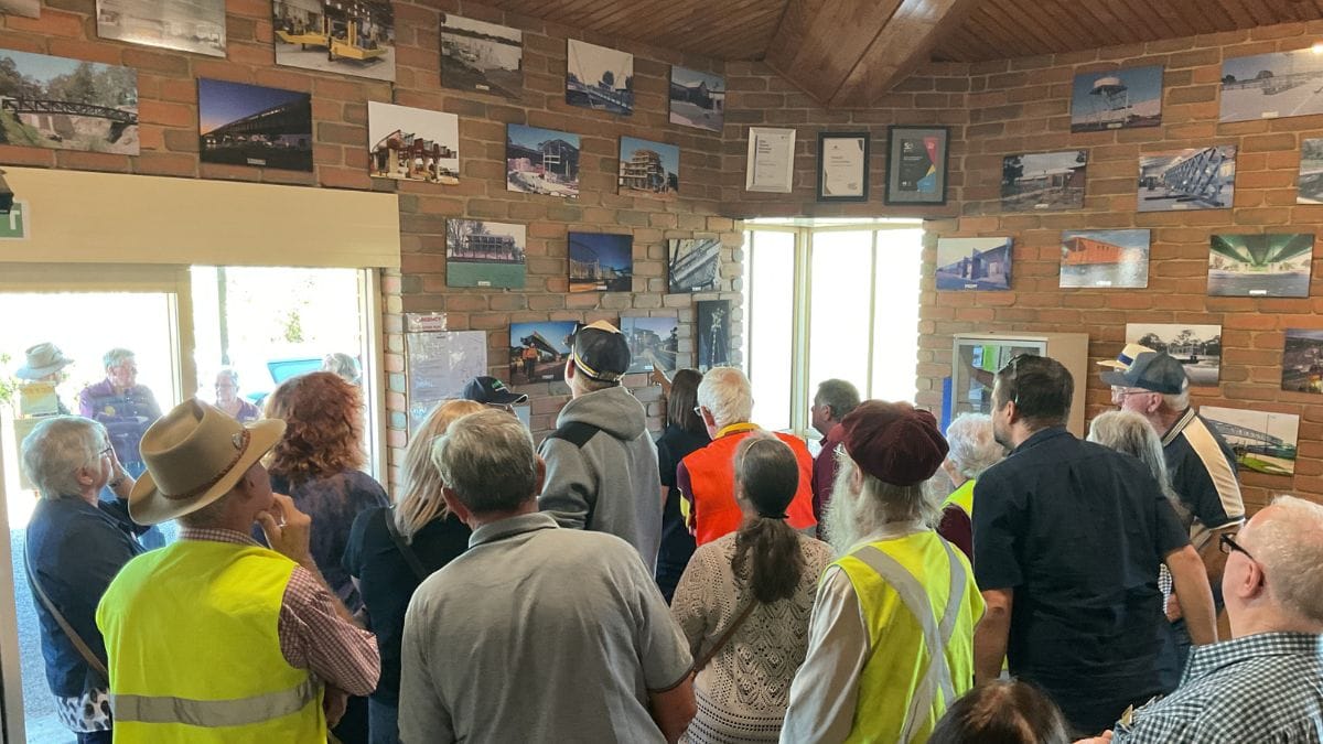 Following the explanation, Project Draughtsman Ethan Klemm joined the first group, before moving them out into the works area to view what buildings and projects were under construction.