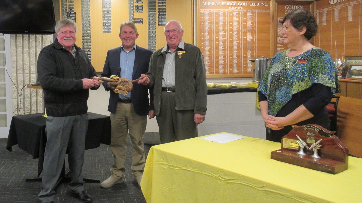 Following the main course, trophies were presented by Mr Minge and his wife Liz, with the winners for 2018-19 being presented with their interestingly designed and coloured “keeper” trophies, a replacement for the perpetual trophies which they gave up on the night.