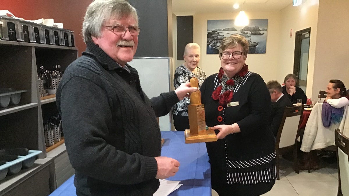 Once most had finished their meal, Mr Courtney and life member and acting secretary Brenda Cowie again began the process of presenting, this time the 2021-22 perpetual awards.