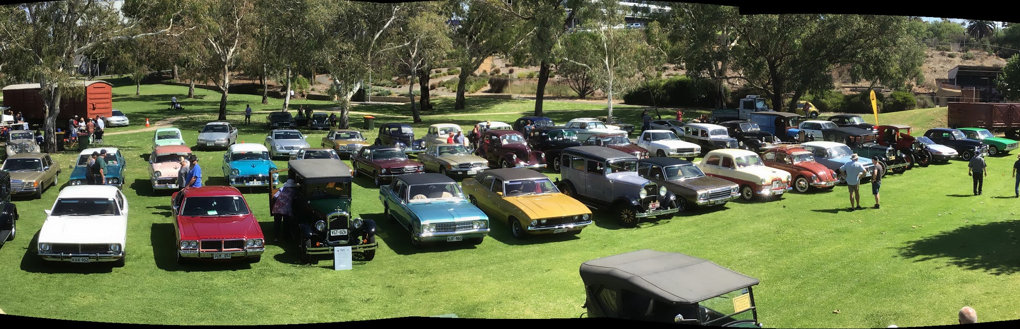Participants set up on the lawns for a BYO morning tea, while many locals came to view the vehicles on display.