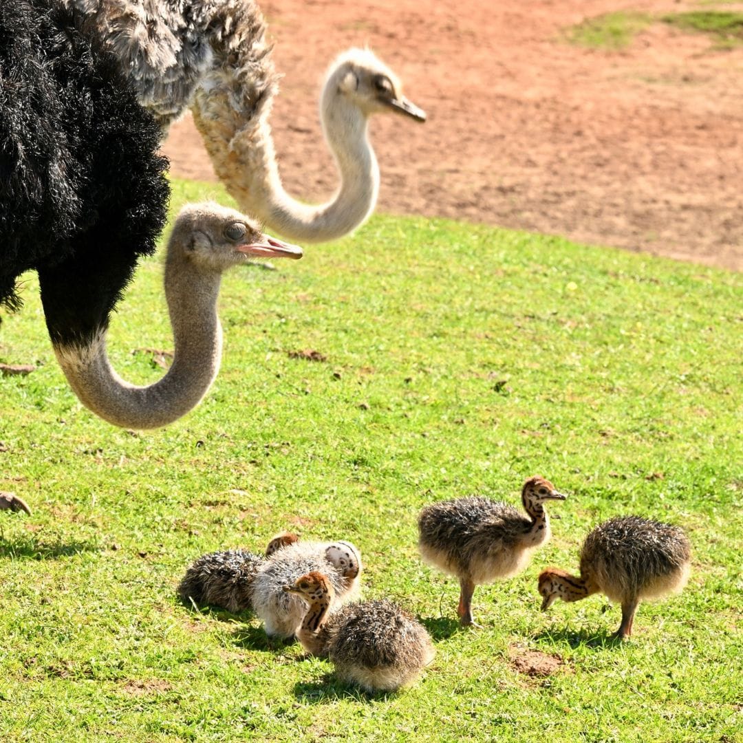 “Then just to add to the fun, a large group of little ostrich chicks has hatched and begun to waddle their way around the waterhole exhibit.