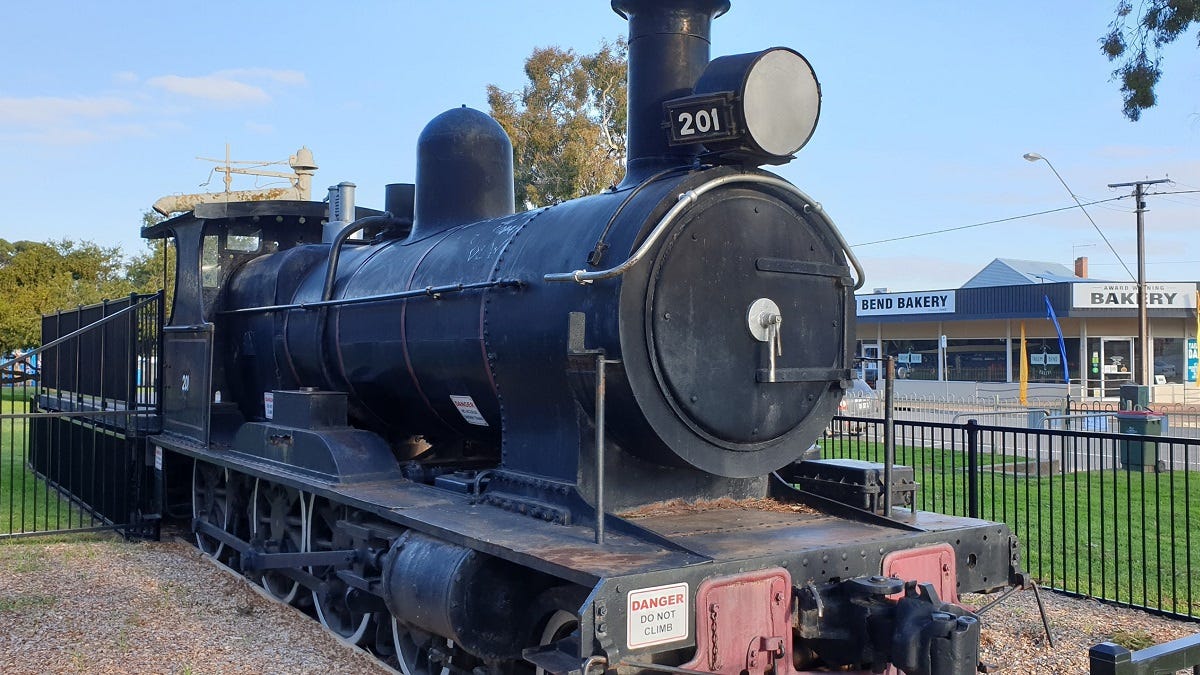 - The steam engine, relocated from the playground