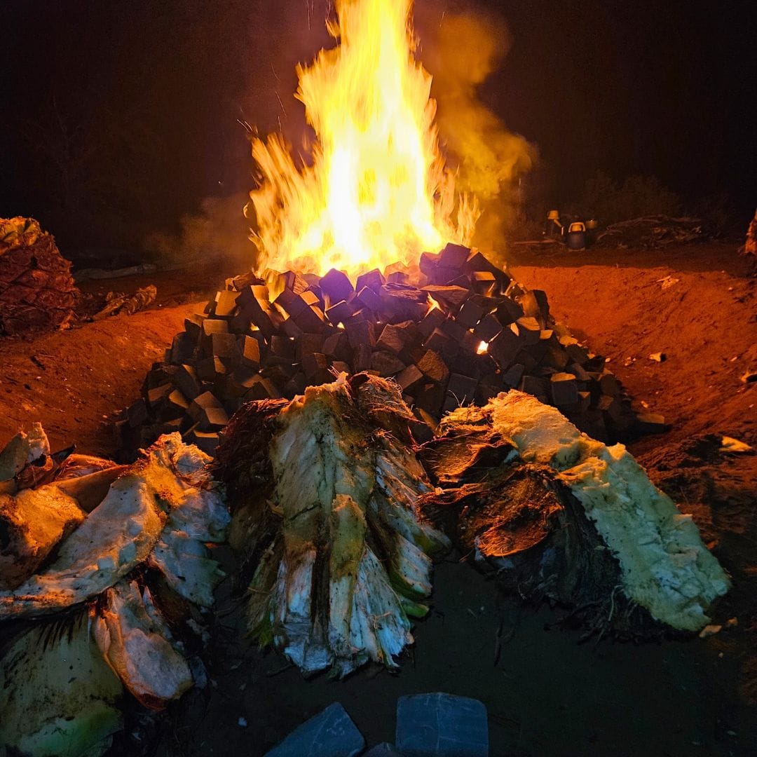 Agave hearts are roasted in a fire pit before being fermented and distilled. Photos: Bremer Valley Agave.