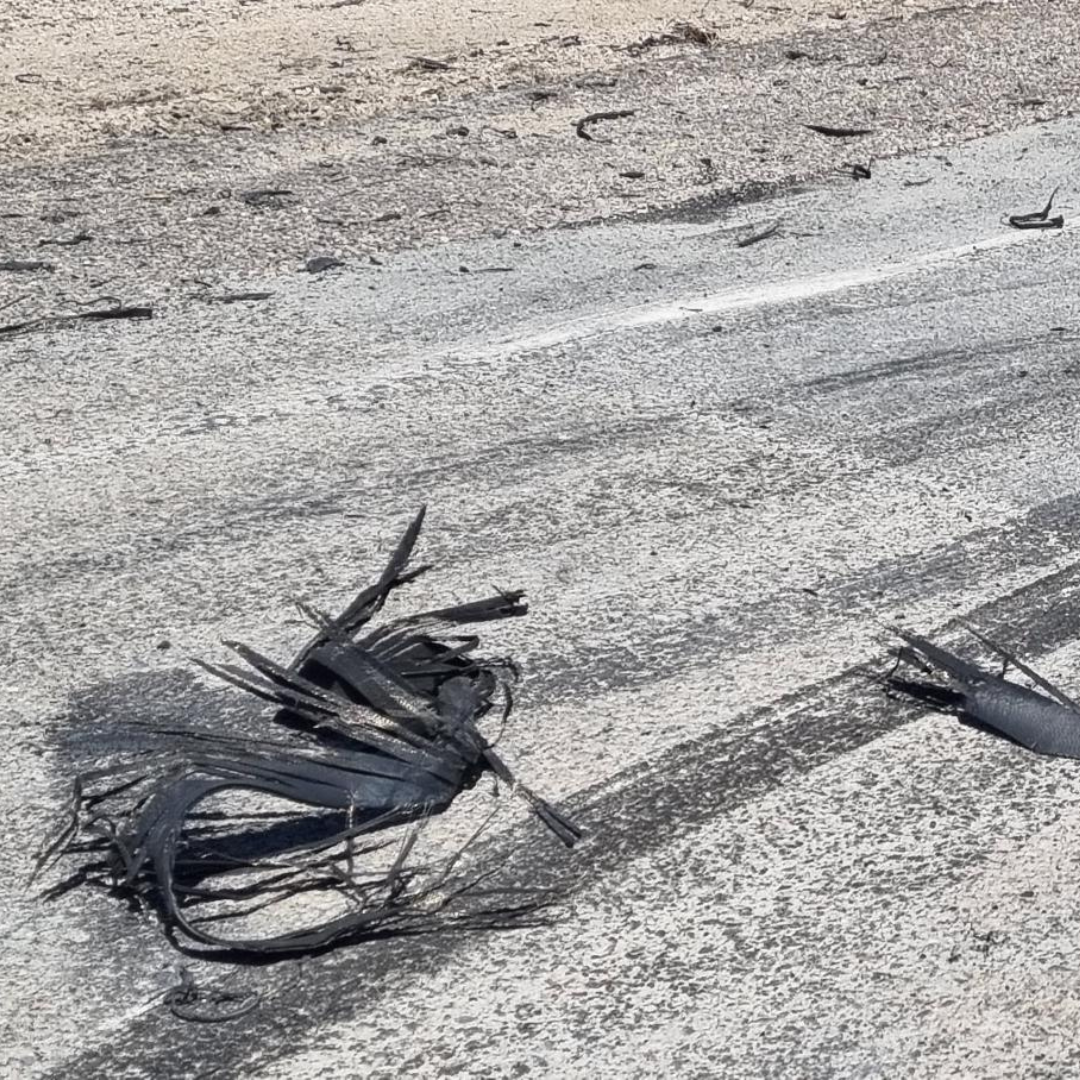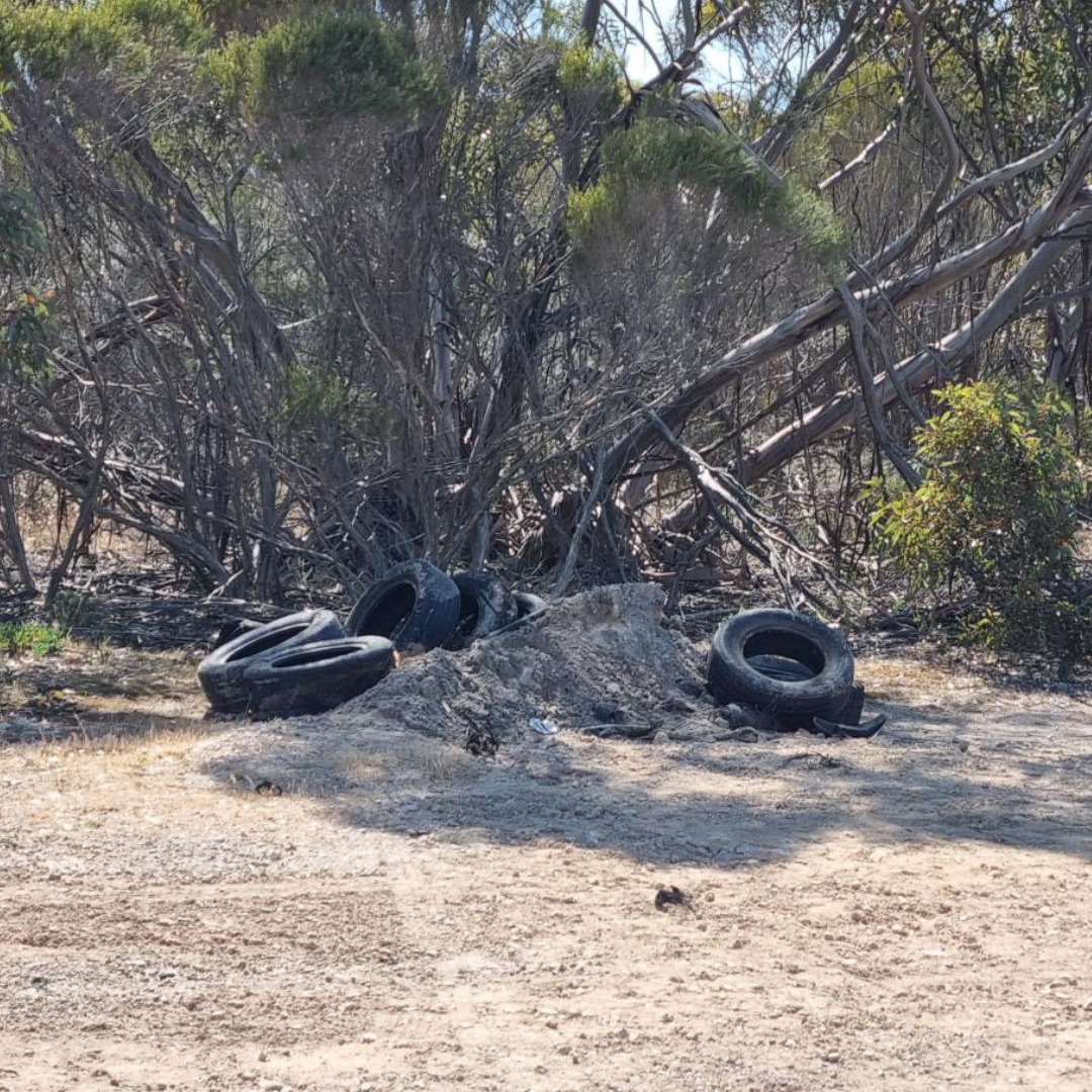 The next morning, burnt rubber was left strewn across the roadway and several damaged tyres were lobbed into the scrub of a nearby conservation park.