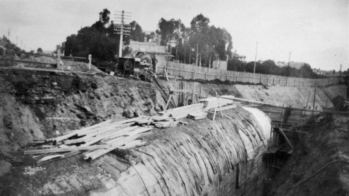 Bridge Street, looking west from near Sixth Street; the riverfront near the Round House, home to both the world-leading Hume Pipe Company and a permanent Ngarrindjeri camp; construction of the railway tunnel under Bridge Street; a view from the east side, near Kennett Road; the Murray Bridge Hotel, looking very similar to what it does today; and Provis' Hotel, also known as the Bridgeport. Photos: State Library of South Australia (B61788).