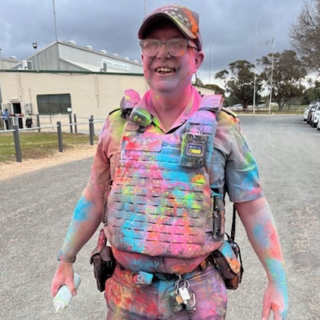 The local kids in the colour run had a successful ambush of Senior Constable David Brown and Senior Community Constable Greg Smith.