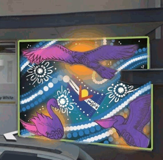 Another mural by Shane Cook and Harley Hall, featuring birds and a Ngarrindjeri flag, is due to be painted on the side of the real estate agency directly across Seventh Street, within the next month.