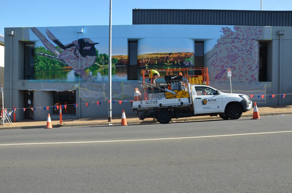 Meet the artist behind the blue wren mural taking shape in Murray Bridge's CBD.