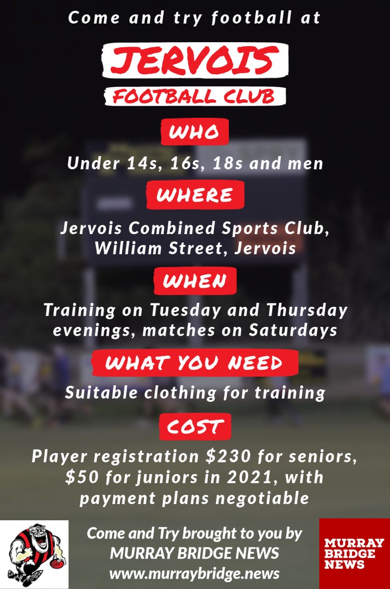 - More information: Search for the Jervois Bluds Football Club on Facebook.