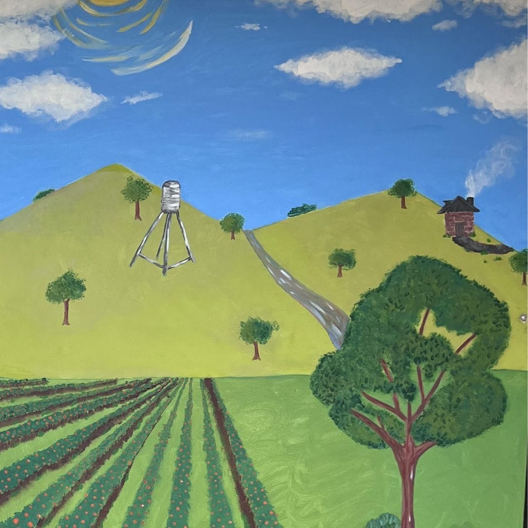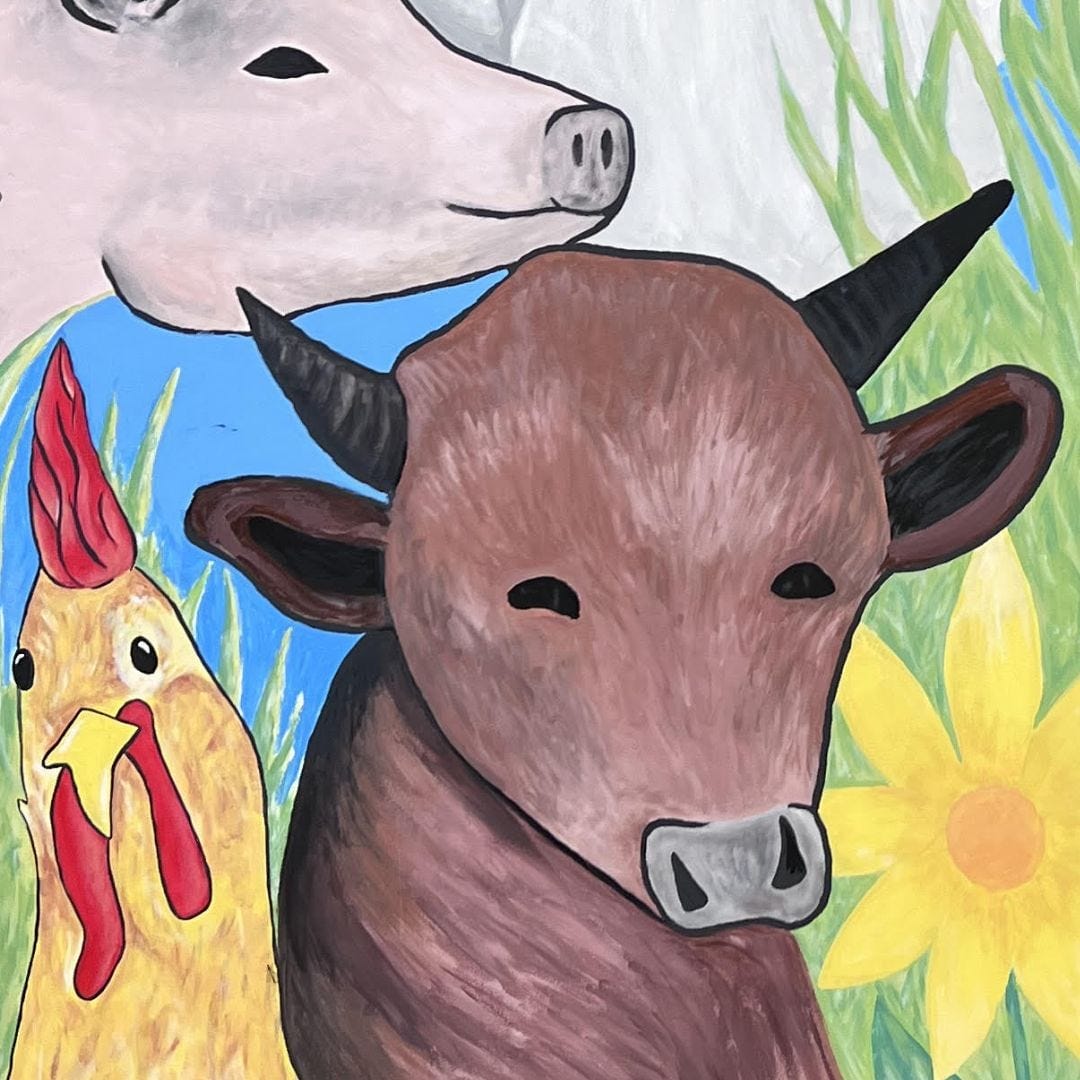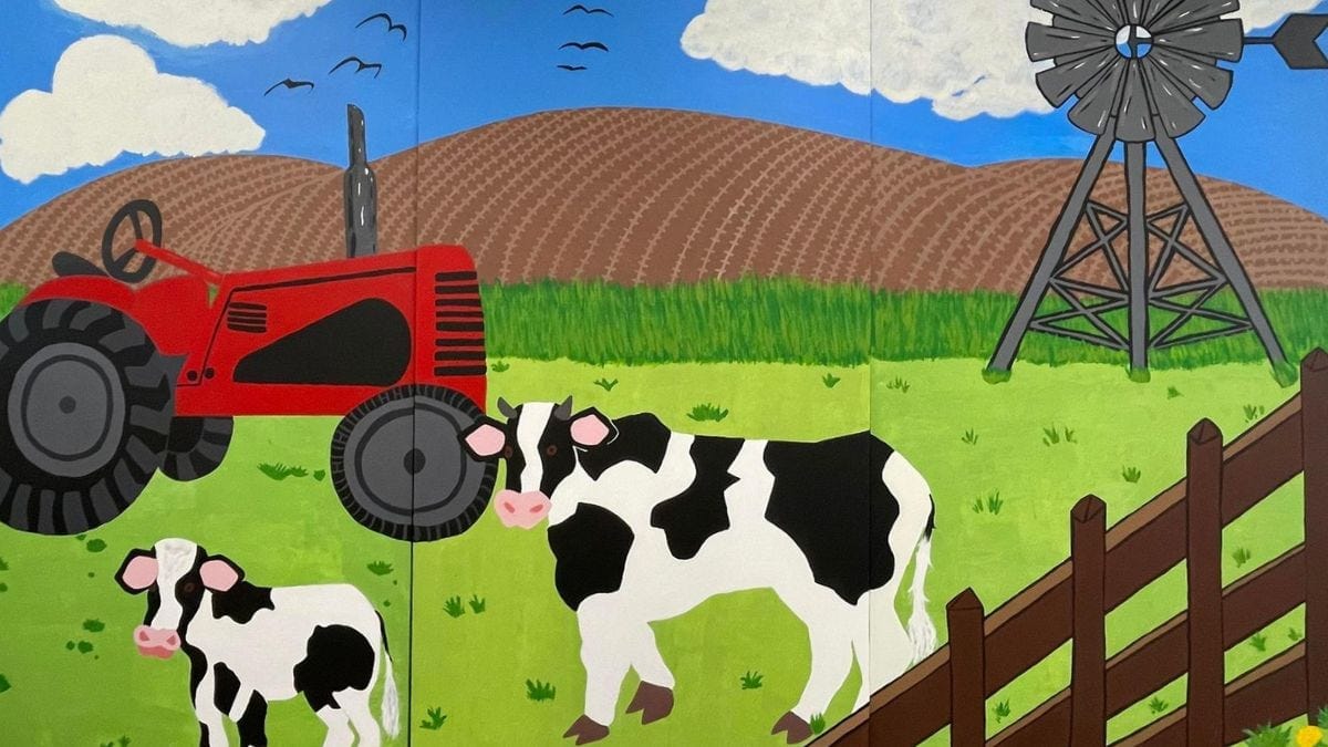 The theme for the mural was “country life”, featuring green fields, tractors and farm animals.