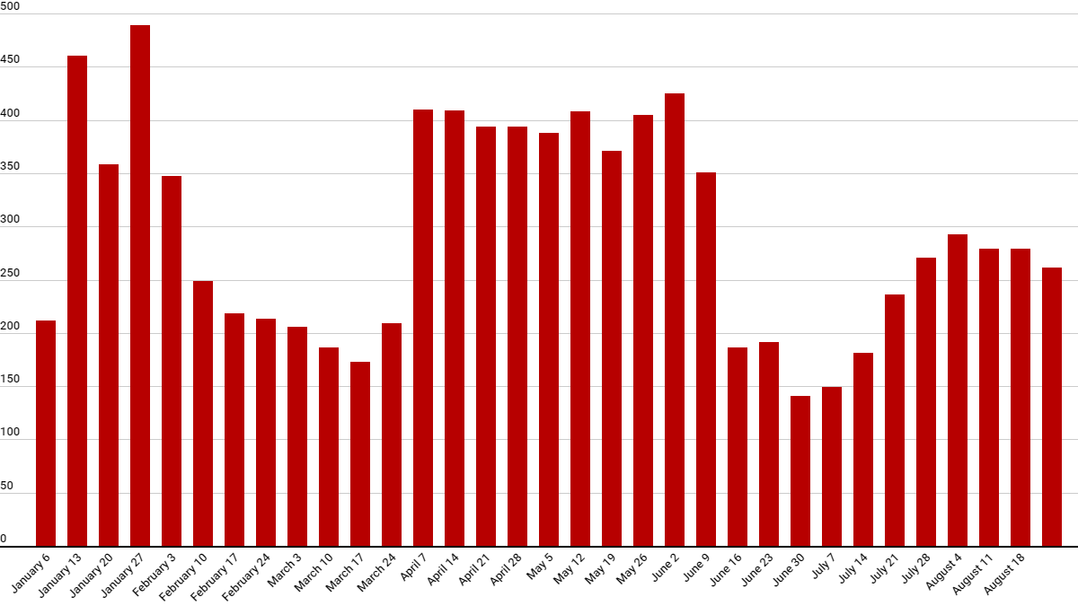 That’s a reasonably dramatic escalation over the 40-50 new cases in each of the three previous fortnights.