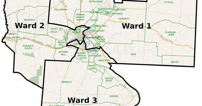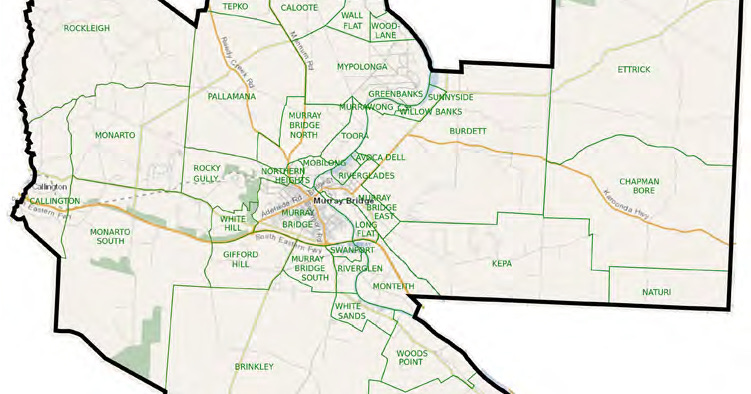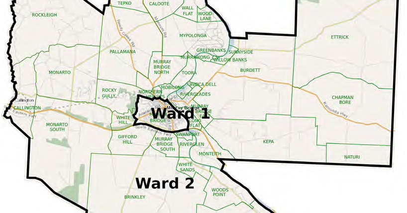 The ward boundary would run along the River Murray from Mypolonga to the old road bridge, then cut through to the hospital roundabout and follow Mulgundawah Road out to Brinkley.