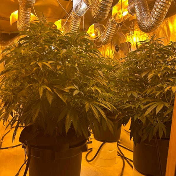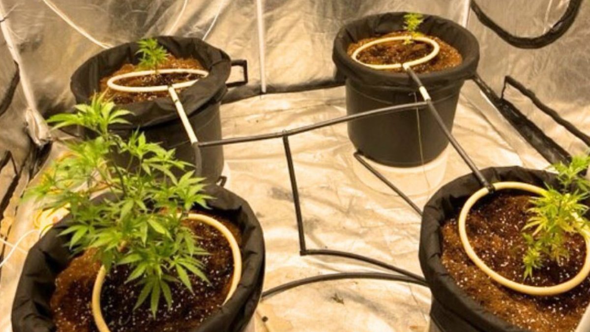 They allegedly found 14 cannabis plants being grown hydroponically, plus dried cannabis.