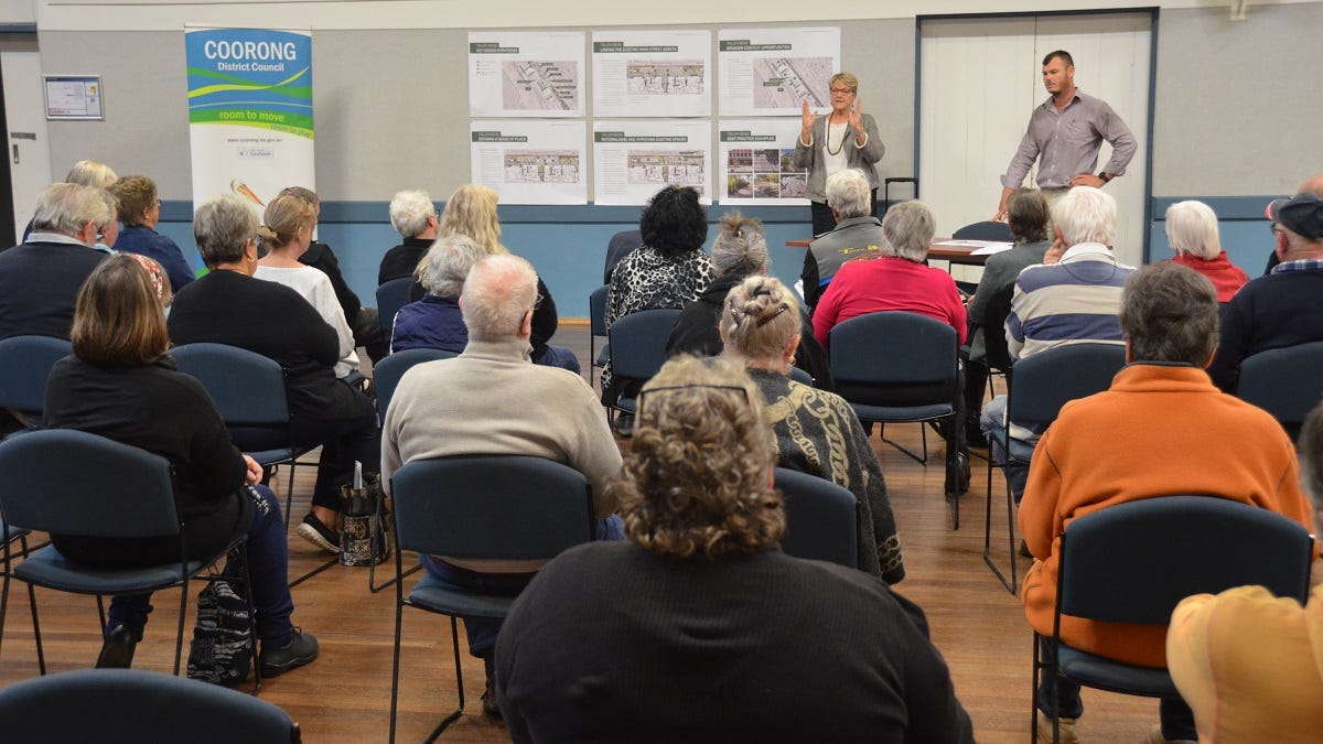 That was the vibe from a public meeting at Tailem Bend on Wednesday night, where about 40 people gathered to hear Coorong council staff give an update on a master plain for Railway Terrace.