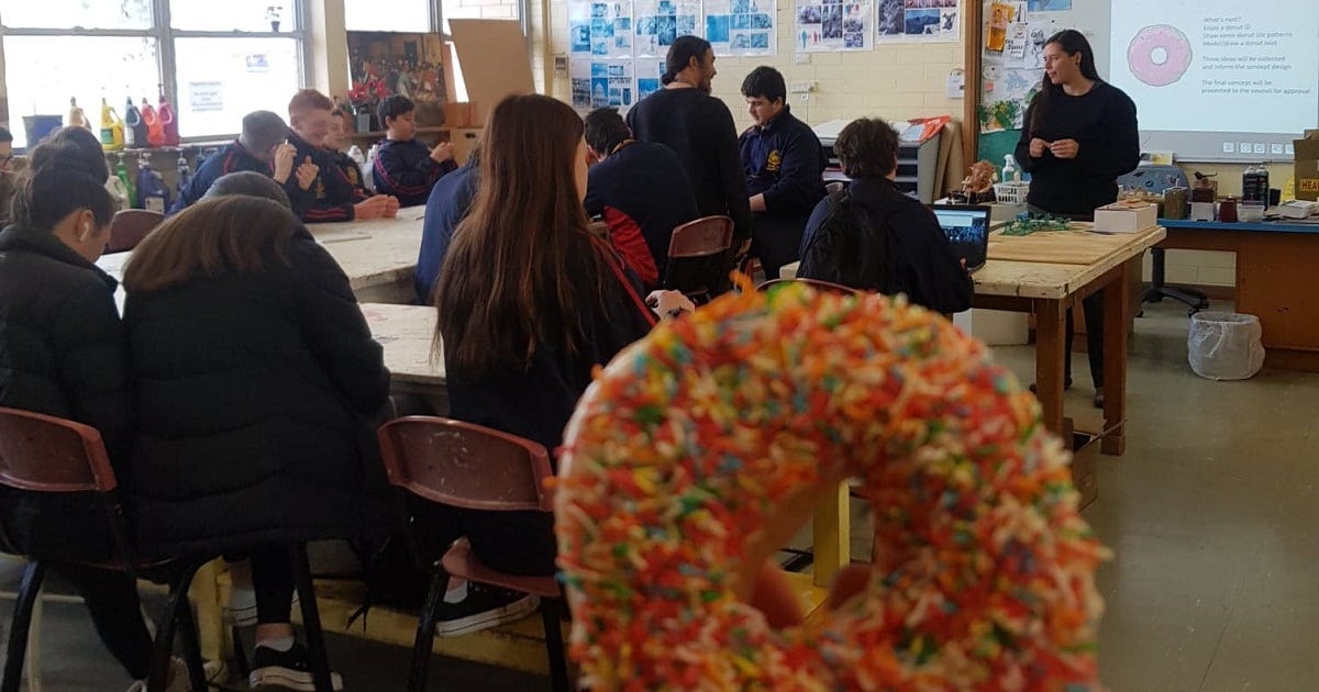 High school students have been working with Finniss artist Christine Cholewa and Murray Bridge Regional Gallery on concepts for a doughnut-themed artwork.