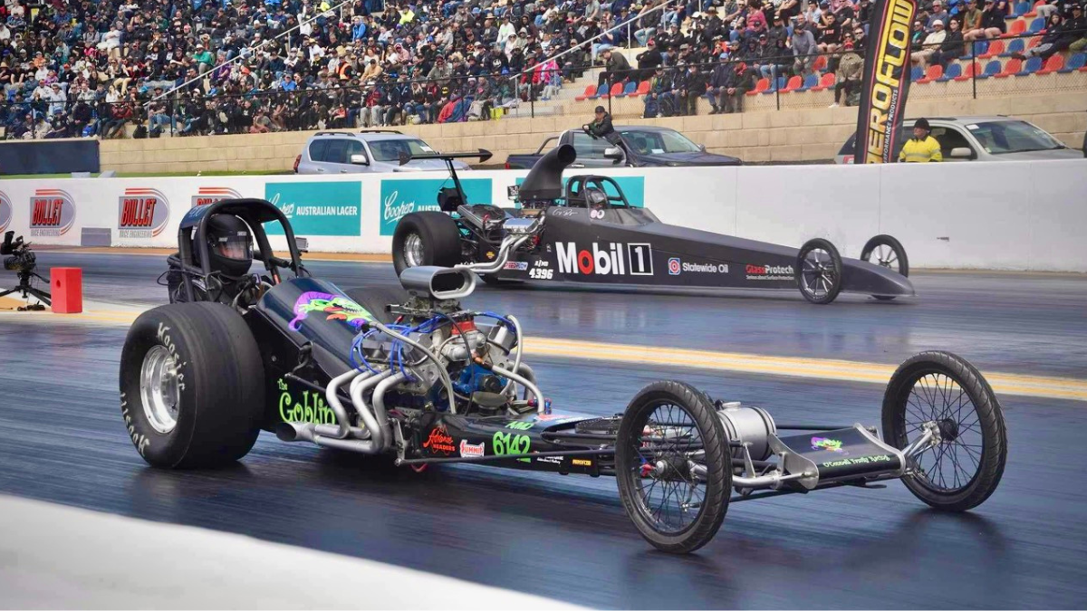 Top fuel racer Wayne Newby set the track record at 3.761 seconds – just 0.12s outside the world record time over 1000 feet.