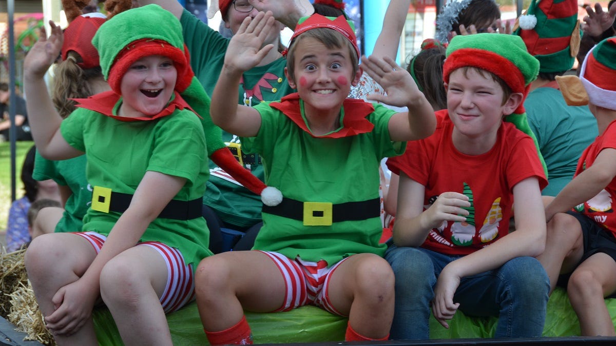 More than 40 floats processed down the main street, including dinosaurs, footballers and a wind-up car, with Coorong Mayor Paul Simmons at the head of the column and Santa and his six white boomers bringing up the rear.