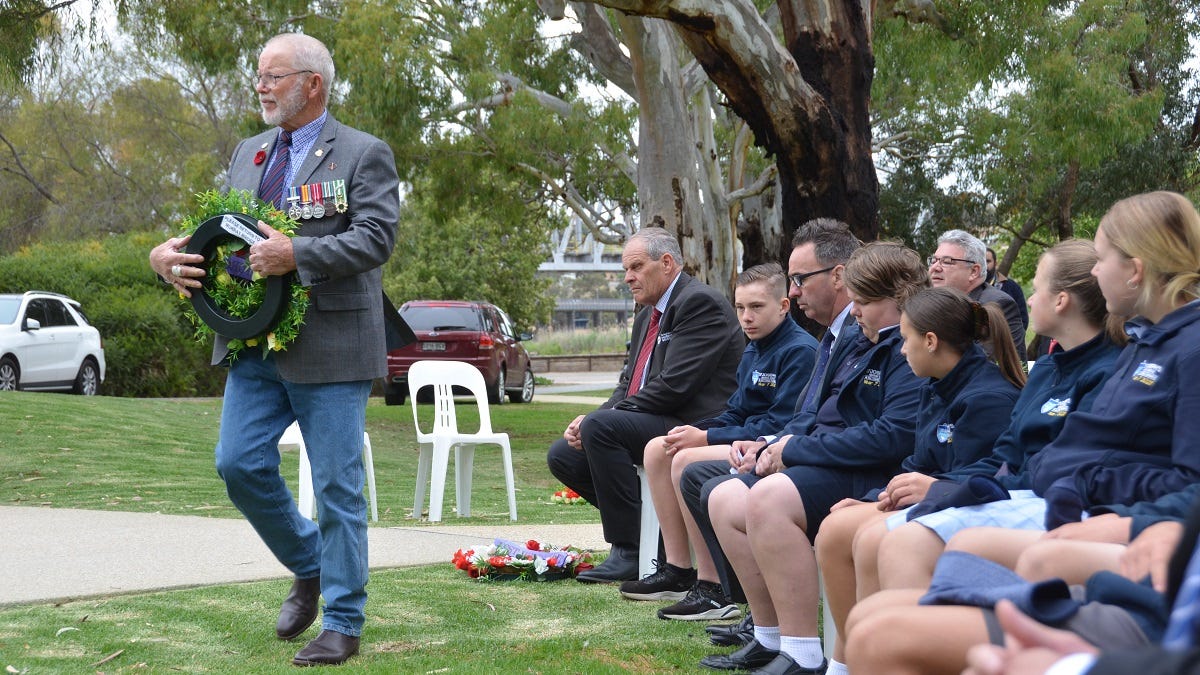 Wreaths were laid, the Ode of Remembrance read and the Last Post played at Murray Bridge’s war memorial, the venue for the annual service since its completion last year.