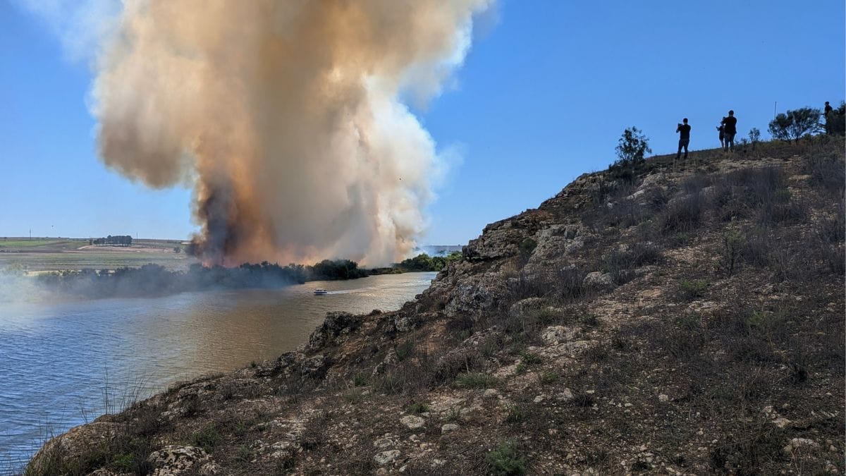 Locals are warned to beware of smoke from a fire burning along the riverfront at Mobilong, northeast of Murray Bridge.