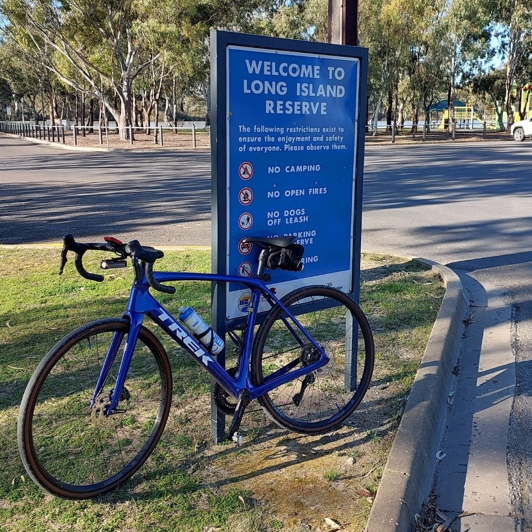 At the southern end of the riverside Murray Cods Drive at Sturt Reserve, cyclists veer right onto Jaensch Road for only a few metres before crossing the road and entering the rubble-surfaced shared trail leading direct to Long Island Reserve.