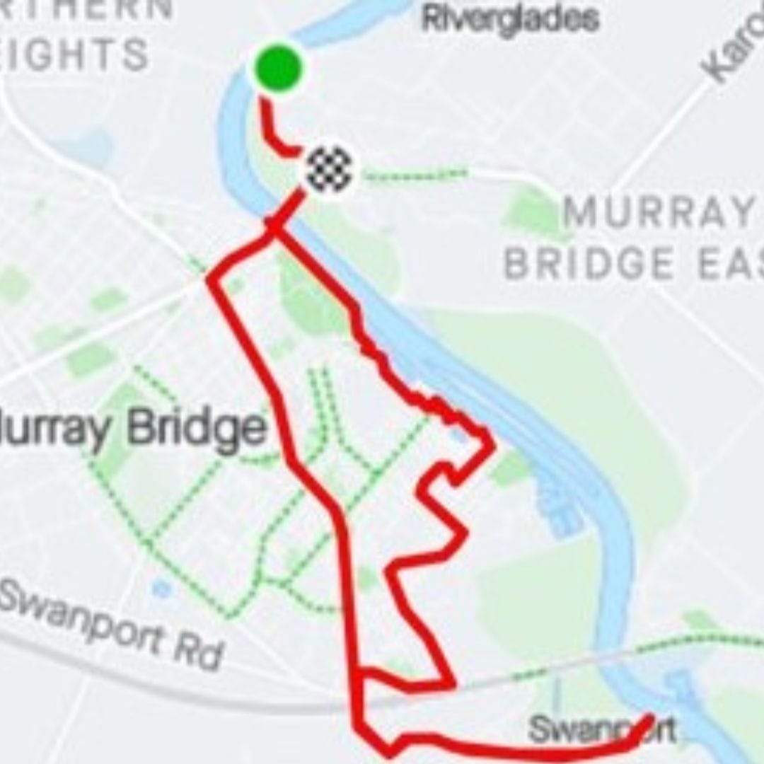 Commencing at Thiele Reserve on the Eastside of Murray Bridge, the ride crosses the River Murray to visit the Wharf Precinct, Sturt Reserve, Long Island Reserve, Tumbella Reserve, Casuarina Wetlands via Pathways Reserve and Swanport Reserve before looping back to the commencement point at Thiele Reserve.