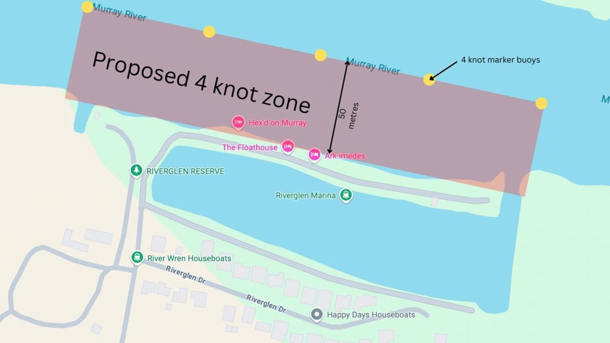 What residents wanted, Mr Laing said, was for a four-knot zone to be created alongside Riverglen Marina, similar to the one at Sturt Reserve in Murray Bridge.