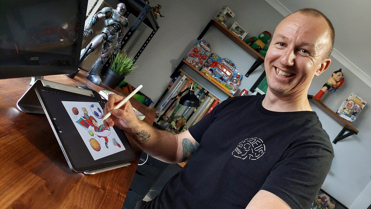Children's illustrator Dave Atze has been contracted to work on a series of superhero books with one of Australia's best-loved comedians.