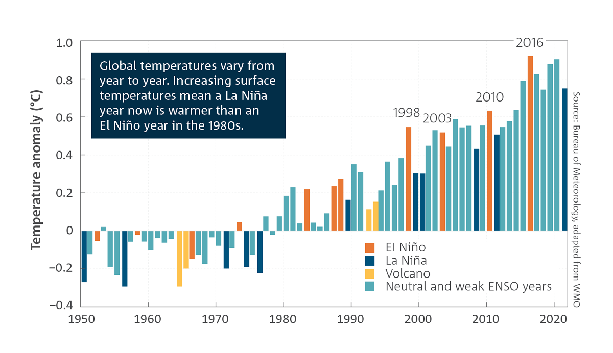 The bureau’s most recent state of the climate report noted that “the severity of impacts on Australians and our environment will depend on the speed at which global greenhouse gas emissions can be reduced”.