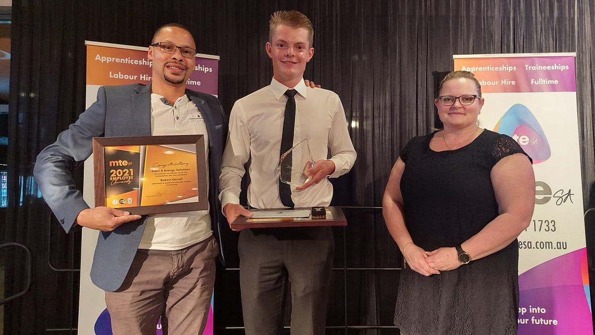The evening’s major award, apprentice of the year, went to electrician Robert Correll of Class A Energy Systems, a solar installer based at Glenside.