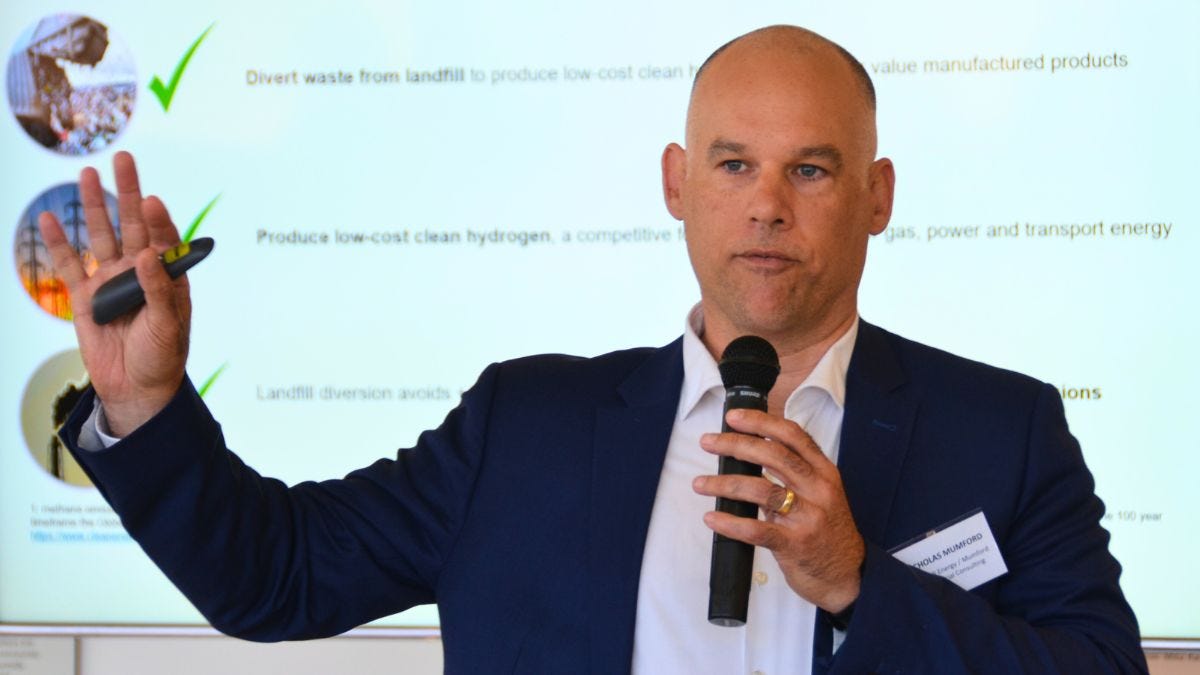 A pilot would first demonstrate the “gasification” technology used to turn bio-waste into hydrogen gas.