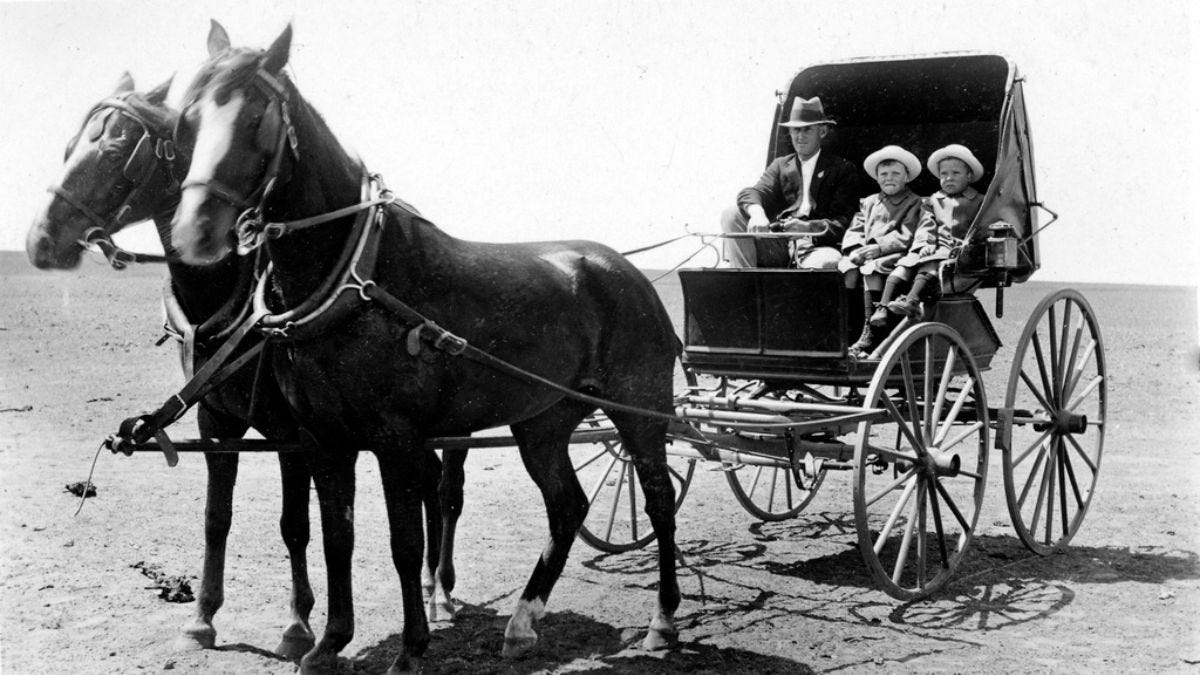 She recalled being driven into town on her father’s horse-drawn sulky, a black velvet bonnet on her head.