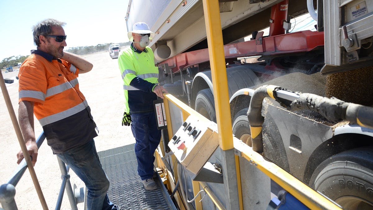 At the company’s Tailem Bend facility, trucks loaded with wheat, barley, canola and faba beans have been steadily rolling in for the past month from as far away as the Riverland and Victorian border.