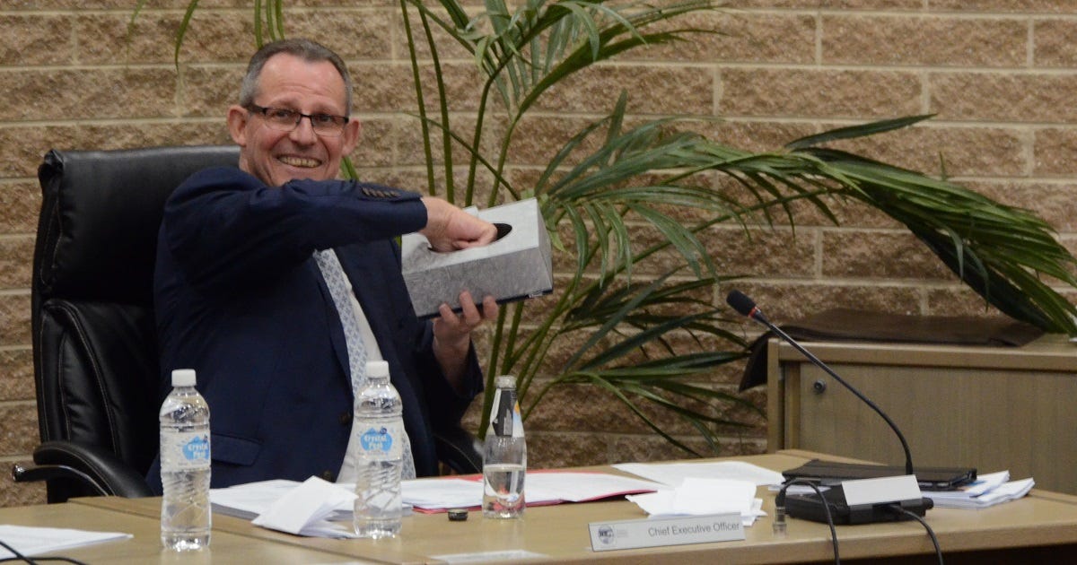 Cr Thorley’s return as Deputy Mayor was confirmed after chief executive officer Michael Sedgman drew his name out of an empty tissue box, in place of an actual hat.