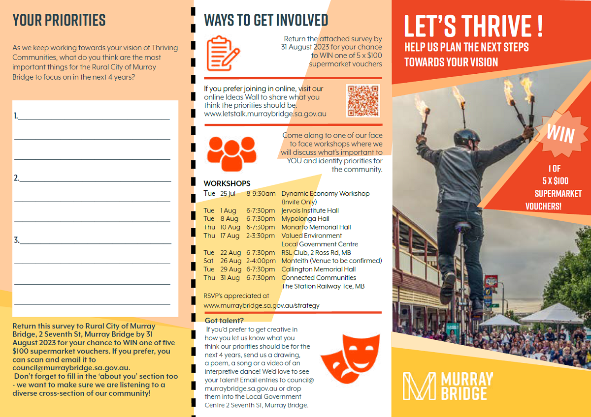 - Have your say: Complete the survey at letstalk.murraybridge.sa.gov.au ā or download, complete and return the form above ā before August 31.