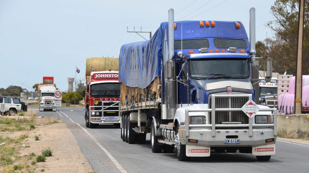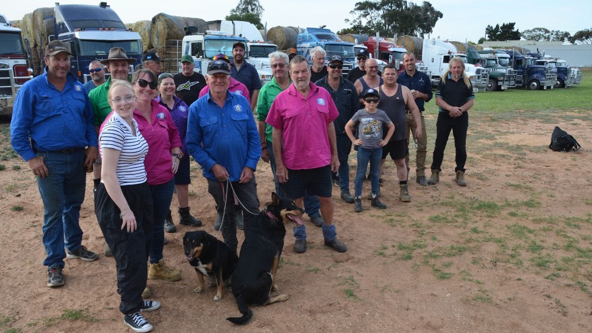 Fifty-five trucks loaded with hay rolled into the region on Saturday before fanning out to properties across the Murraylands and Mid North.
