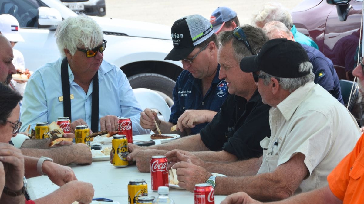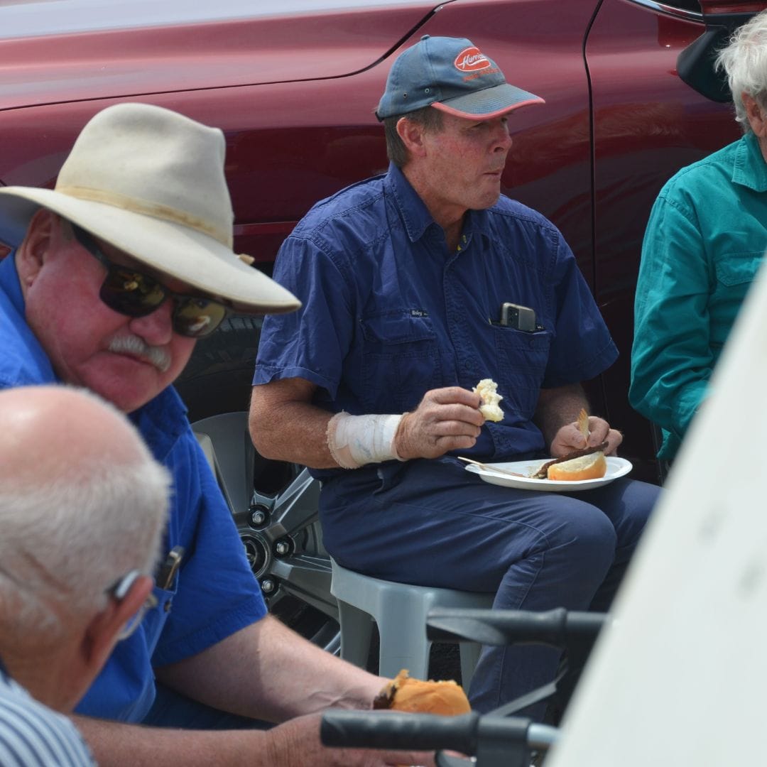 At Tailem Bend, the local Lions Club put on a barbecue for the truckies and their helpers as they passed through, serving up sausages, patties and bacon in the wind and dust of a service station car park.