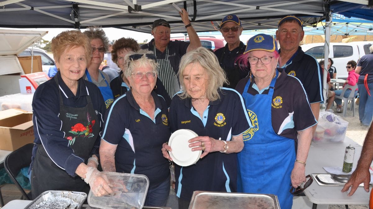 Members of the Lions Club of Tailem Bend, supported by donations from local businesses, serve lunch to the Aussie Hay Runners on Saturday. Photos: Peri Strathearn.