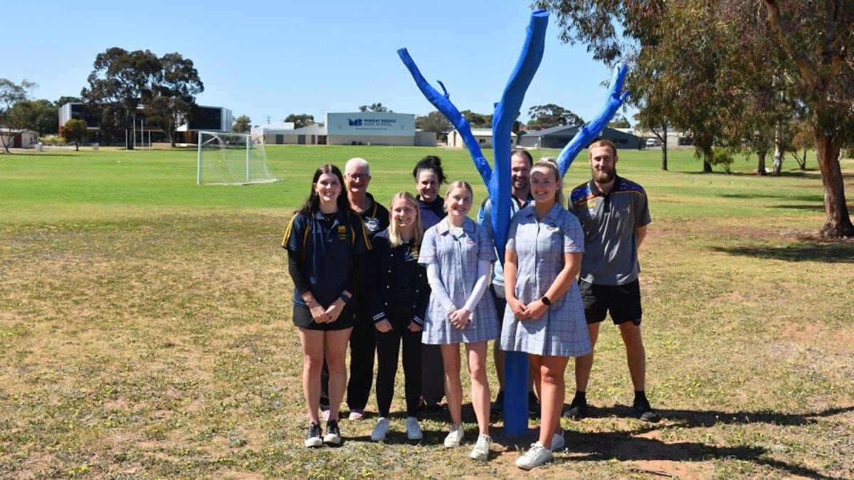 There’s a blue tree on the grounds of Murray Bridge High School, thanks to five former students who finished year 12 last year.