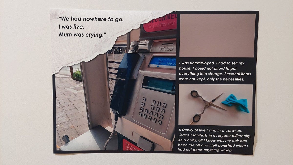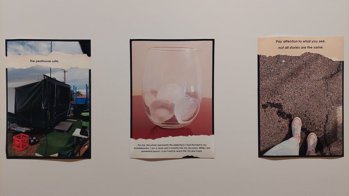 The anonymous support worker and carer, now 25, was one of many locals who shared their experiences of homelessness, in words and photos, at a pop-up exhibition in Murray Bridge on Tuesday.