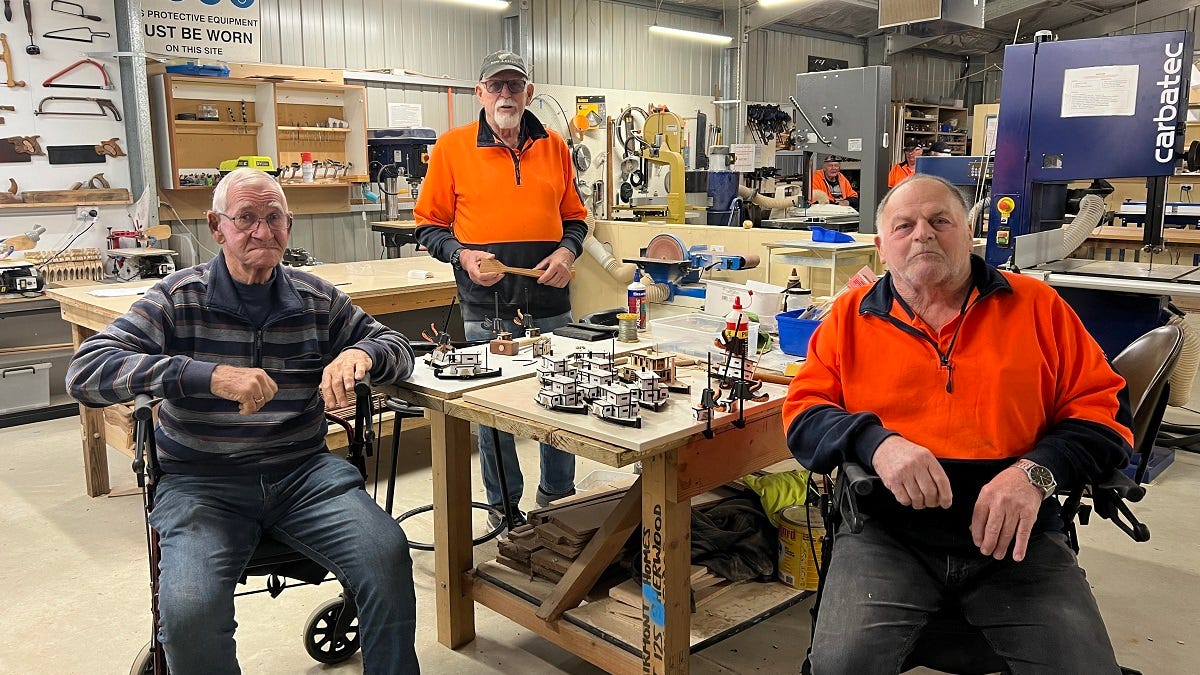 With community projects, repairs, toy making and more, there is always something for men’s shed members to do – even if it’s just to hang about for a chat.