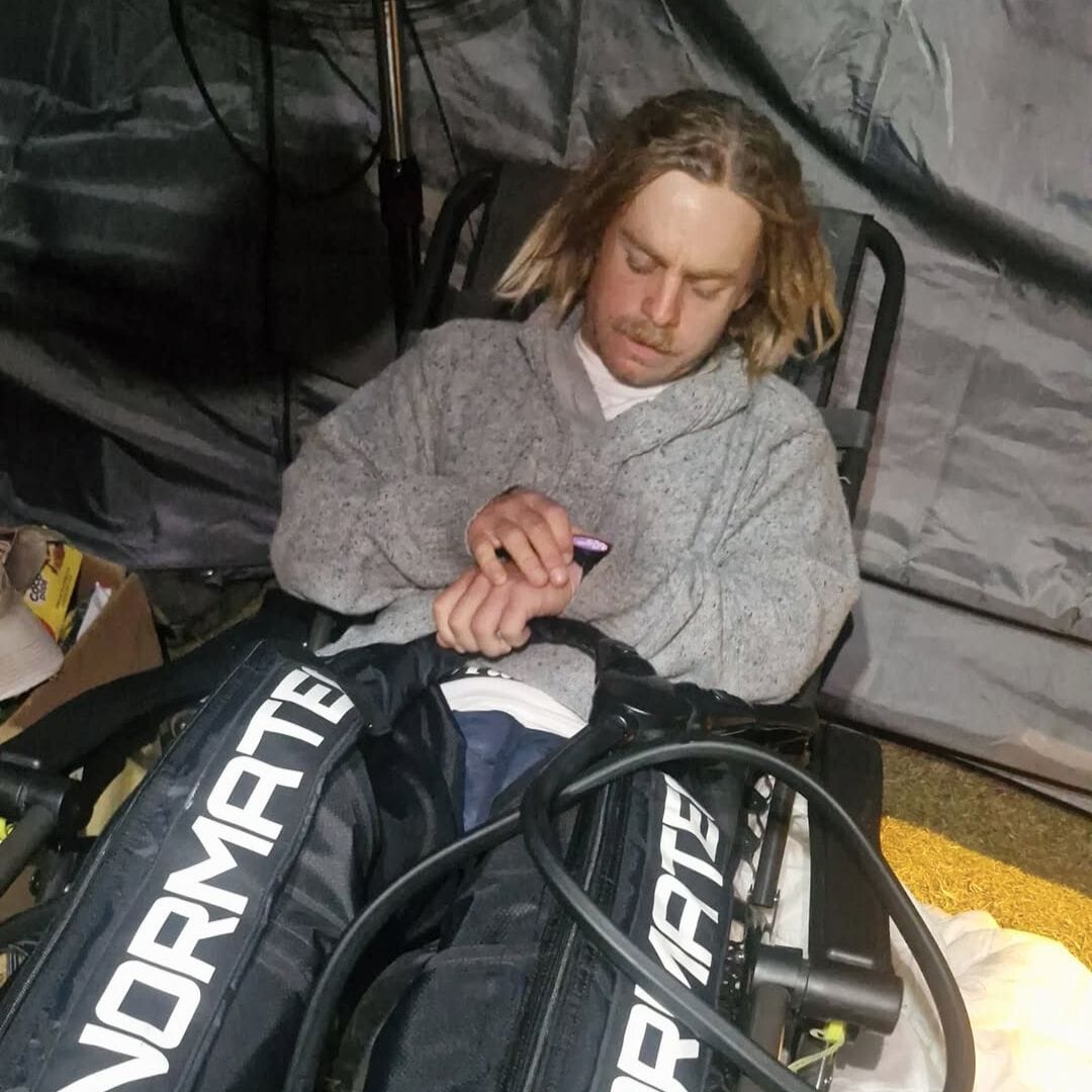 Finishing his run took Kai Martin through the night and right to the limits of human endurance. Photos: Peri Strathearn, Kai Martin/Instagram.