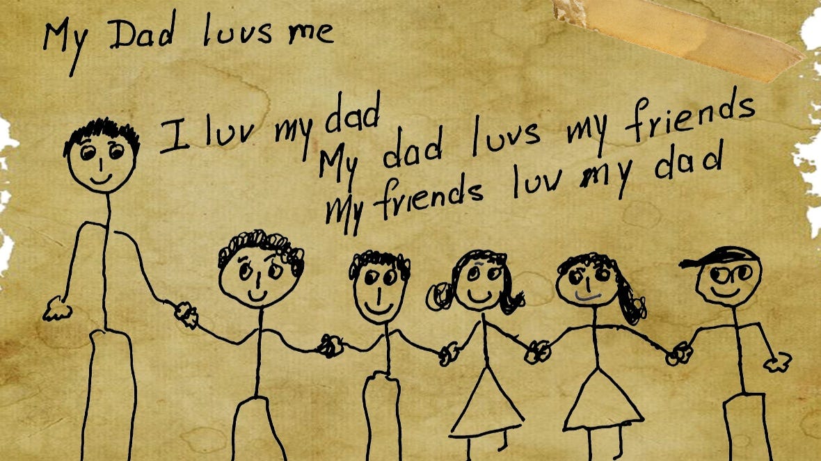 The drawing shows the father, son, and friends holding hands together as expressions of caring and love.