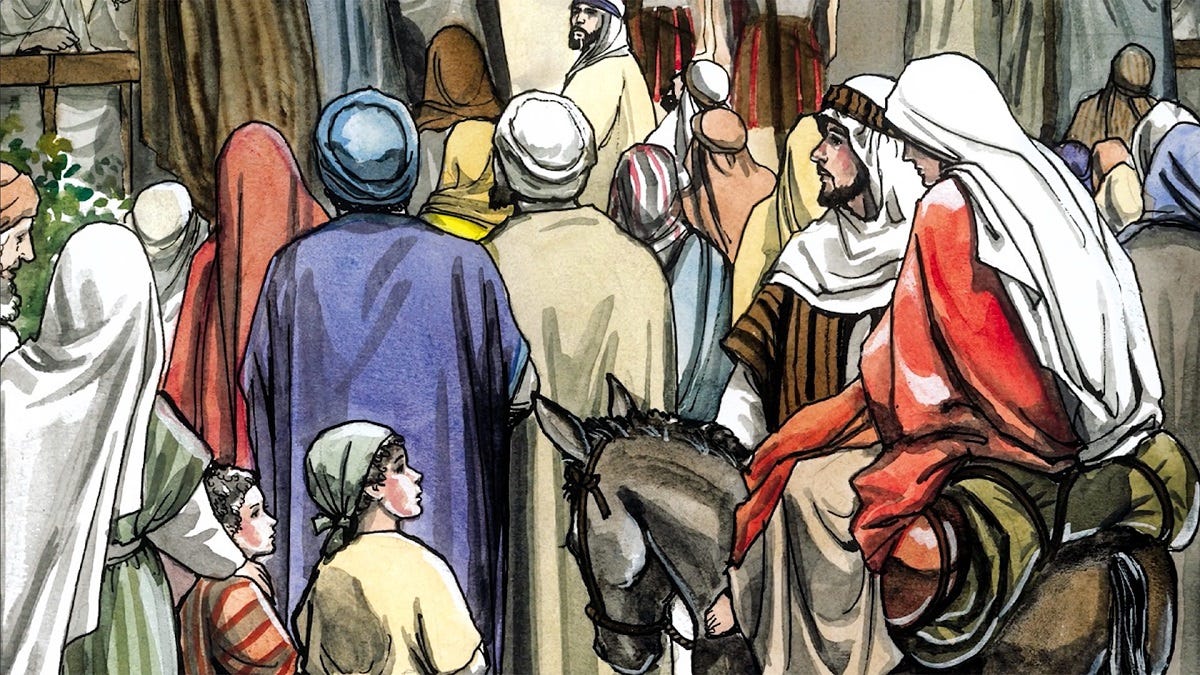 So, at the end of the road trip, worn out, cold – not hot and dusty, remembering this was winter time in their country – footsore, tired, Joseph, pregnant Mary and a non-pregnant donkey arrived in Bethlehem, along with a mob of other travellers all coming to be counted.