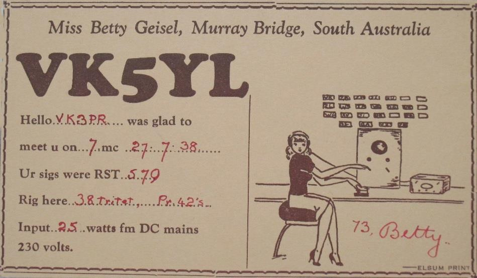 In 1936, Betty Geisel became the first licensed YL – amateur radio speak for “young lady”.