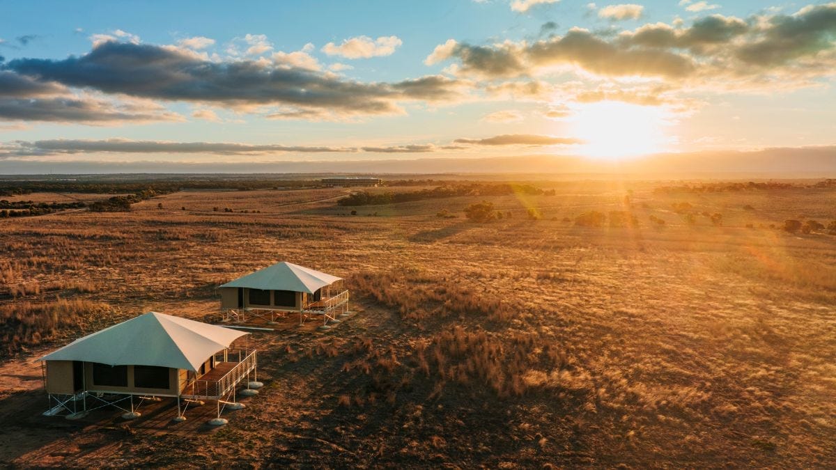 The hotel and glamping facilities are among the key drawcards in Monarto Safari Park’s new Wild Africa precinct, which offers the biggest safari experience anywhere in the world outside Africa to around 200,000 visitors each year.