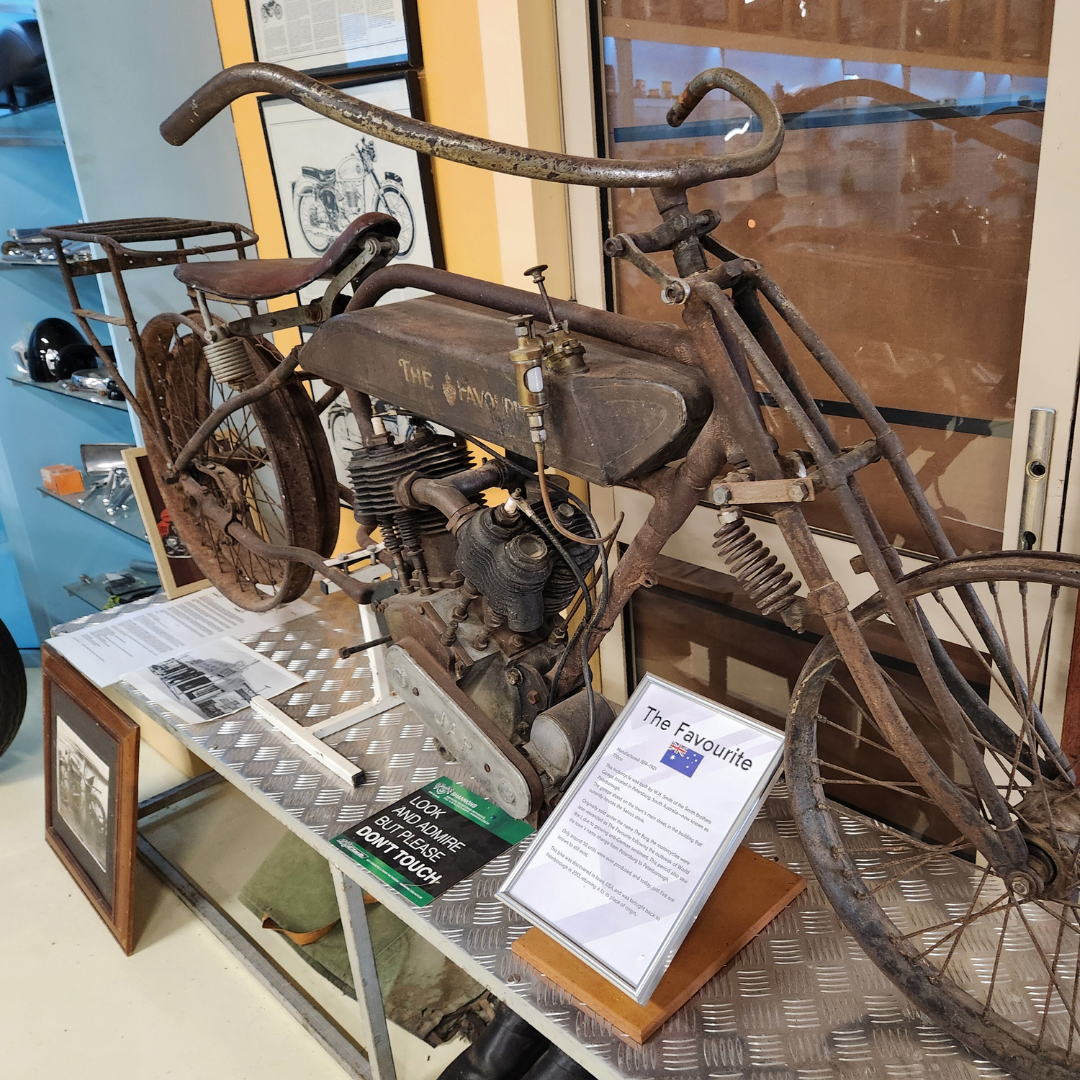 The couple now have around 52 bikes on display at their Mannum museum, the eldest of which – a bike called “the Favourite” – was built here at Peterborough in 1914.