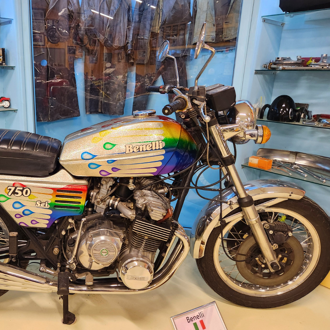 Also in their collection is a Benelli 750 Sport from 1976 that had previously been custom painted for Dave Hill, lead guitarist of the English rock band Slade.